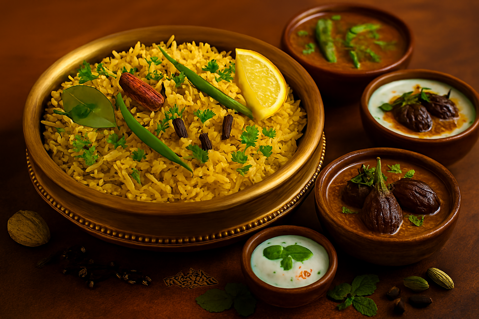 A fragrant Hyderabadi rice dish cooked in aromatic spices, caramelized onions, and fresh herbs. Bagara Rice is a delicately flavored preparation where each grain is infused with the warmth of whole spices and the subtle richness of ghee. (Serves 200 grams in 1 portion)
